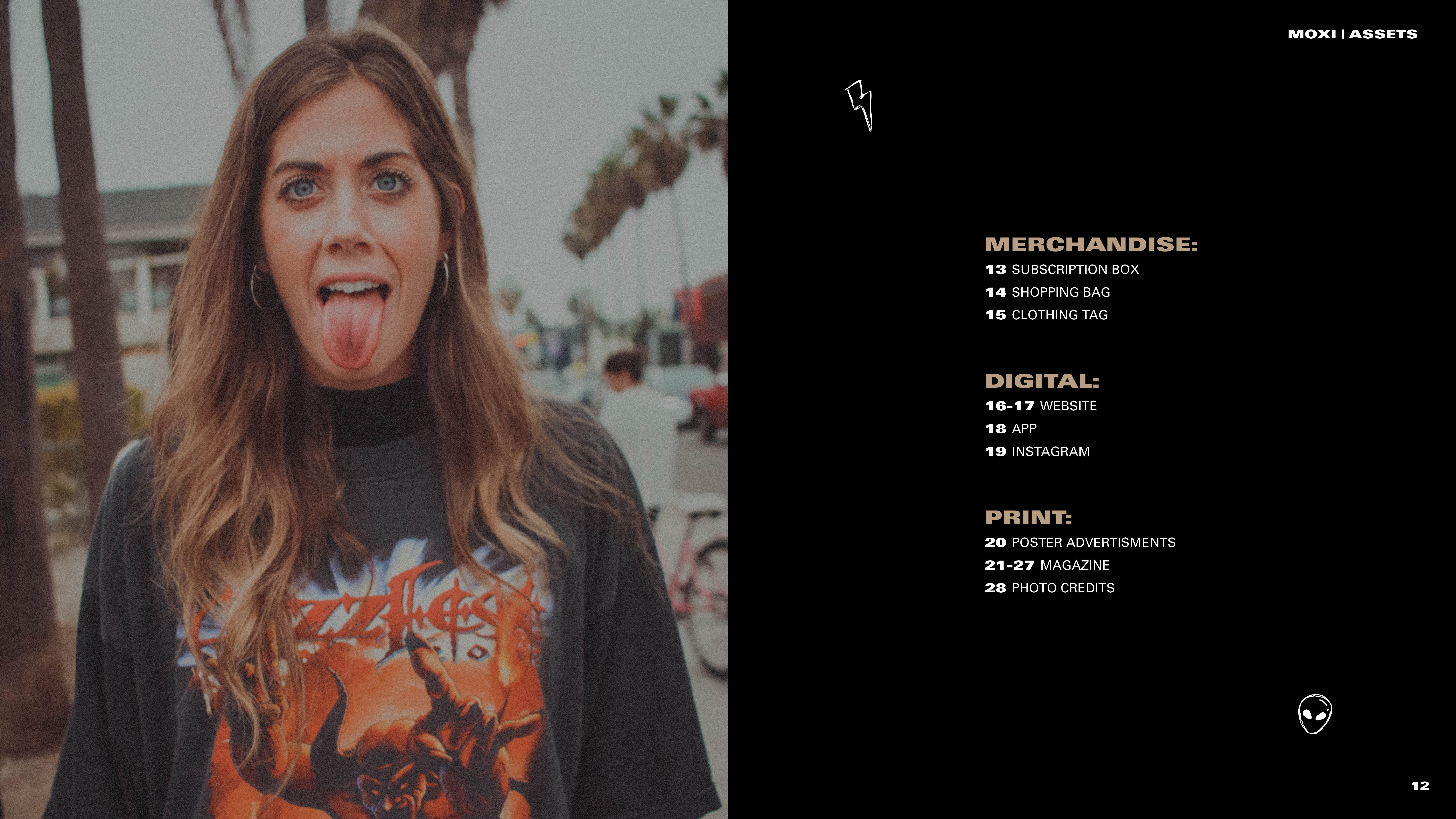 assets include: brand book | magazine | subscription box | shopping bag | clothing tag | website | mobile app | social | poster campaign